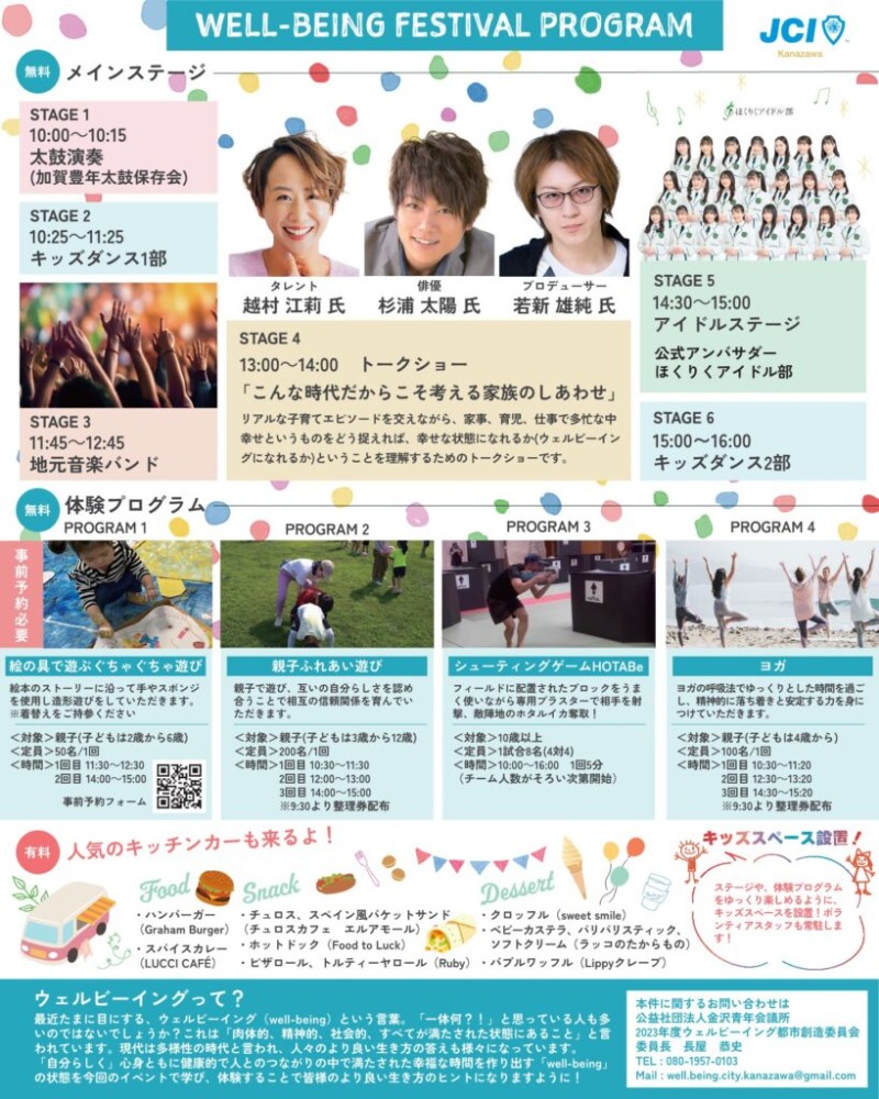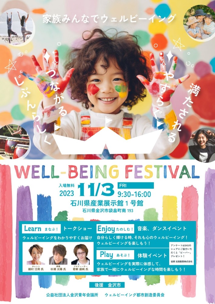 内容:2023年11月3日(金)石川県産業展示館1号館にてWELL-BEINGを体験できる「WELL-BEING FESTIVAL」を開催します🎪🎊✨✨
