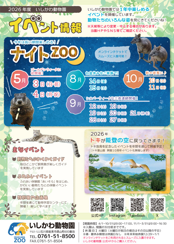 【いしかわ動物園】2026年度のイベント情報