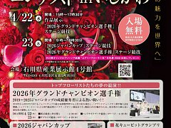 JFTD花キューピット2026 フラワーデザインコンテストinいしかわ 内容: デザインフラワーの展示およびコンテスト 対象:一般 開催日:2026年4月22日(水)15:00~17:30 、 23日(木) 9:00~18:30 場所:産業展示館4号館 主催者:一般社団法人 JFTD